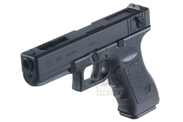 CURRENT STOCK: RESERVE ONLYExcellent finishing and texturing for an EBB, this 18C looks very much like the more expensive gas blowback versions. Breech cover recesses and opens up when slide is pulled back. Big fat grip gives it a feeling of mass despite it's relatively light...Qty in Cart: 0Price:Subtotal: -